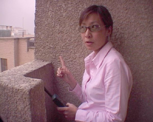 閭丘躲在樓頂角落為總部作聯線報道