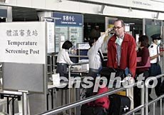 為確保沒有SARS病徵的旅客登機,香港4月17日凌晨起實施離境探熱新檢疫措施,不少旅客均支持新安排,認為令他們更安心。洪少葵 攝
