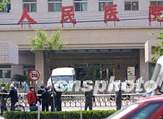 北京晚報報道說,據一位目擊者稱,今天上午8時剛過,大批戴著口罩的民警、保安以及醫務工作者來到人民醫院的東門外,沿著醫院門前人行道上的樹木拉起了警戒線。警戒線從醫院東門一直向兩邊延伸,直拉到無法進入醫院的高墻外。在拉警戒線的過程中,有患者的家屬希望進入醫院看望患者,但都被民警勸走了。