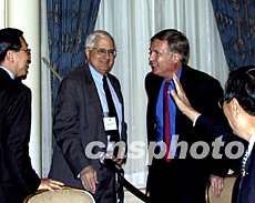 應(yīng)美國百人會第十二屆年會邀請,兩位美國前駐華大使芮孝儉(左二)和羅德(右二)二十五日在紐約百人會年會專題討論會上發(fā)表演講,兩人均稱目前美中關(guān)系發(fā)展良好,臺灣問題仍是美中關(guān)系的核心問題。作者:趙海燕