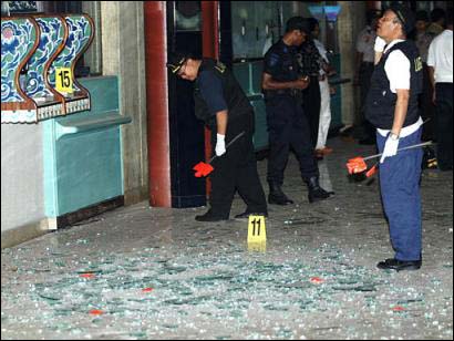印度尼西亞警方檢查爆炸現(xiàn)場
