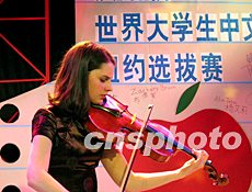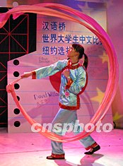 由紐約中國留學服務中心、美國僑報和美國中文電視聯合舉辦的第二屆“中國橋”世界大學生中文比賽,四月二十六日在紐約舉行。來自紐約六所大學的學生參加了中文演講、中華文化問答和才藝三個項目的比賽,來自賓州大學的學生表演中國舞蹈《蝴蝶》。作者:游江