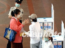 香港一些購(gòu)物商場(chǎng)為預(yù)防“非典型病毒”傳播,紛紛設(shè)立衛(wèi)生站方便市民清潔,并宣傳防止SARS傳播方法。洪少葵 攝