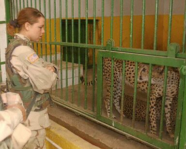 曾經屬于烏代私人所有的七只獅子,兩只印度豹和兩條狗在美軍進入巴格達后,被放入伊拉克公園飼養。