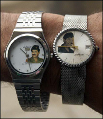 中新網(wǎng)4月28日電 據(jù)法新社報(bào)道,西方人正在巴格達(dá)到處尋找“戰(zhàn)爭記念品”。巴格達(dá)的商人及時(shí)地抓住了這一商機(jī),他們在臺灣制造的手表上印上薩達(dá)姆的頭像。這種手表一下子就成了巴格達(dá)市的熱銷產(chǎn)品。