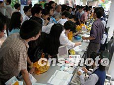 廣州電信“小靈通”業務從四月二十九日開始放號,由于該業務資費便宜,首日放號就吸引了大批市民前來咨詢選購。作者:柯小軍