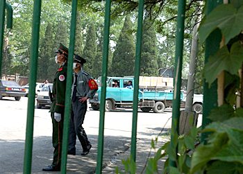 軍警守衛醫院重地,物資源源運到。