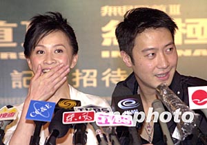 歌星黎明、影星劉嘉玲5月2日在香港出席電影《無間道Ⅱ》及《無間道Ⅲ終極無間》新聞發布會,兩人將加入演出《無間道Ⅱ》及《無間道Ⅲ終極無間》,黎明將飾演一名警司。鄧慶樂 攝