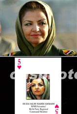 中新社紐約五月五日電(記者 陳建)伊拉克“炭疽夫人”胡達(dá)·阿馬什博士,端莊美麗得有些出人意料。美方官員說(shuō),五月四日,這位女科學(xué)家向美軍投降了。她是美軍發(fā)布的五十五名通緝要犯撲克牌中唯一的女人。在紅心五撲克牌上,五十歲的“炭疽夫人”頭戴豆綠色頭巾,威嚴(yán)地敬著軍禮。