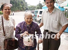 據潘伯介紹,他母親生于一八八五年十一月十二日,生育了兩男兩女,潘老伯排行最小,兄妹四人只有他一人還健在。潘老伯生育了七個子女,目前共有十二個孫子。其姐姐的孫子也已娶妻生子,母親已有玄外孫了,F在,政府每年都組織醫生上門為老人體檢,醫生說阿婆身體不錯,還能再長壽多年。