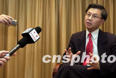 五月十三日晚,美籍華裔科學家何大一博士就“非典”治療等問題在北京接受采訪。中新社記者:張煒