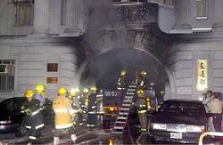中新網(wǎng)5月15日電 據(jù)“中央社”報(bào)道,今天晚上約七時(shí)三十分左右,一輛載有七桶汽油的卡車沖撞臺(tái)灣“交通部”大門并 引起大火,卡車司機(jī)當(dāng)場(chǎng)死亡,“交通部”人員全部平安逃出。