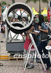十八日,香港文化中心廣場舉行博物館開放日,一座“杜素式天文望遠(yuǎn)鏡”吸引參觀者。據(jù)悉,該望遠(yuǎn)鏡能看見暗至16等的恒星、小行星等。譚達(dá)明 攝