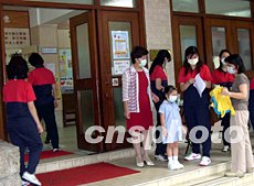 香港42萬幼稚園、幼兒中心、初小及特殊學生19日復課。由于“非典”疫情受到一定控制,有家長對復課安心。譚達明 攝