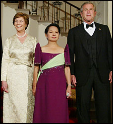 阿羅約目前正在美國進行國事訪問,她是布什上任以來第一位對美進行國事訪問的亞洲國家領導人。