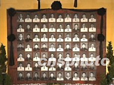 追悼會會場正前方懸掛著鮮花翠柏簇擁的70名遇難官兵的遺像。1200名海軍官兵和部分親屬代表參加了追悼會。作者:中新社