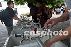 部分復課的北京中學生每日進校后,主動用藥皂洗手。面對即將全面復課的學生,北京各學校紛紛采取增建洗手池、加強消毒等措施預防“非典”。中新社記者:鄭萍萍