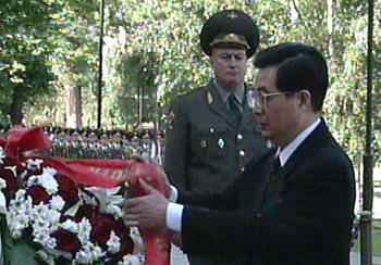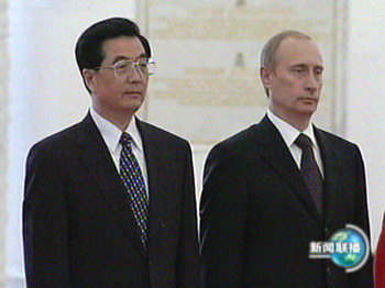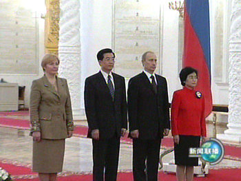 今天是胡錦濤主席訪俄的第二天。當地時間今天上午,胡錦濤主席向無名烈士墓敬獻了花圈,并參觀了俯首山衛國戰爭博物館。中午,普京總統在克里姆林宮為胡錦濤主席舉行了歡迎儀式并進行小、大范圍會談。會談結束后,兩國元首簽署了中俄聯合聲明等三個文件。