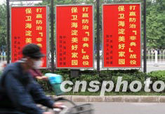 圖:北京街頭廣告提醒:防“非典不松懈”