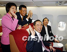 圖:香港官員乘“港龍”重建飛行旅游信心