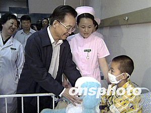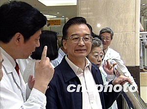 溫家寶在北京兒童醫院看望了正在這里接受治療的兒童,代表中共中央、國務院向全國兒童致以節日的祝賀,向保障兒童健康成長的廣大醫務人員和兒童工作者表示親切慰問。
