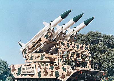 “天空”導彈是印度國防研究發展組織正在研制的5種導彈系統之一。這種導彈重650公斤,有兩級推進器,可攜帶50公斤負荷。導彈射程25公里,機動性強,已經過多次試射,即將裝備部隊。
