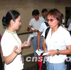 中新社北京六月五日電(記者 沈晨)中國國家女子足球隊(duì)一行二十八人今日中午十一時四十五分抵達(dá)廣州白云機(jī)場,稍做停留后搭乘下午四時的泰航班機(jī)前往泰國曼谷,出征第十四屆亞洲杯女足賽。