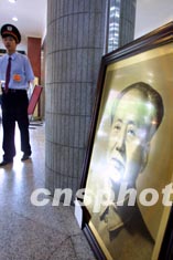 隨著非典疫情的平穩(wěn),北京銷售市場人氣上升,各大商場抓住時機促銷商品,北京西單一家工藝品商店特制售價為三千九百元的巨型銅版毛澤東畫像擺放門前,以求好運。中新社記者:廖文靜