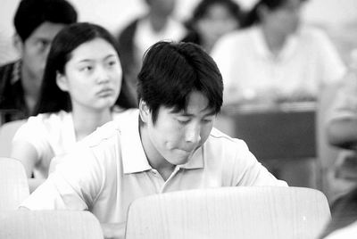 8點(diǎn)50分,考官開(kāi)始宣講考場(chǎng)紀(jì)律,顯然考生中有祁宏的熟人,他邊點(diǎn)頭打招呼,邊笑嘻嘻地把書包放到較遠(yuǎn)的座椅上。其他考生也先后收好復(fù)習(xí)卷、參考書,迅速安靜了下來(lái)。考試兩小時(shí)后結(jié)束,答完考卷的考生們議論紛紛地走出了考場(chǎng)。