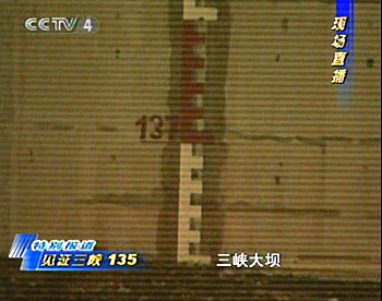 水位達(dá)至135米的三峽大壩。(中央電視臺(tái)圖)