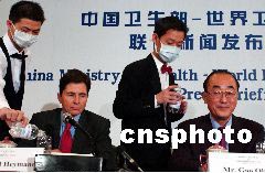世界衛生組織傳染病執行主任戴維·海曼十二日在北京指出,中國對SARS病人的診斷標準與WHO的標準是一致的,但中國的標準更為敏感,這使中國的疑似病人更多。中國衛生部副部長高強(右)也認為兩者診斷標準一致。張煒 攝