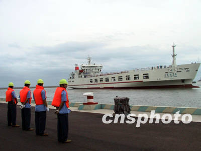 十四日中午一時,一聲汽笛長鳴,“粵海鐵二號”火車輪渡駛進了粵海鐵南港港池,十五分鐘后大副將一號纜拋向南港碼頭——“粵海鐵二號”與他的兄長“粵海鐵一號”在粵海鐵南港碼頭首尾相望勝利會師。