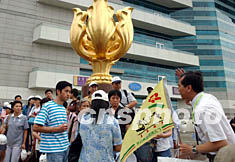 廣之旅三百人大型旅游團六月十四日在香港金紫荊廣場拉開香港游序幕,使該旅游景點人氣重現。潘索菲 攝