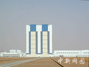 被譽為“亞洲第一大門”的酒泉衛星發射中心總裝測試廠房外景。