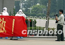 解放軍小湯山醫院將在20日送走最后一批SARS康復患者后結束光榮使命,18日軍方攝影師在隔離區認真記錄該醫院的最后時刻。中新社記者:任晨鳴