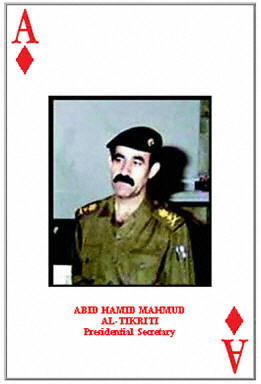 據法新社報道,中央司令部發表聲明說:“馬穆德將軍現已被聯軍拘押。他周一在伊拉克境內被聯軍抓獲。”他在美國所列的伊拉克前政權要員通緝名單上排名第4,是撲克牌通緝令中的方塊A。