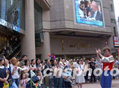 香港時代廣場大屏幕播放新聞后,市民歡欣鼓舞。
