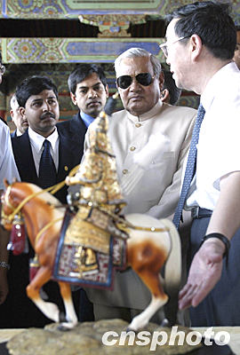“這是很值得參觀的地方,”瓦杰帕伊說。二十四年前,時任印度外長的瓦杰帕伊第一次訪問中國時曾到過故宮。今天,再次來到這里,瓦杰帕伊已是滿頭白發。