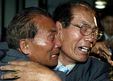 在當(dāng)天下午舉行的團(tuán)聚活動中,來自韓國的110名離散親屬代表與他們失散50年的親人見面。