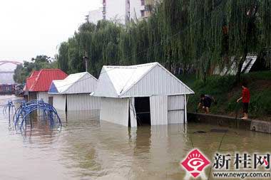 由于上游接連普降大雨,漓江水位迅速上漲,至6月27日9時30分,達(dá)到147.09米,比去年最高洪峰超出0.17米,超過30年一遇特大洪水。為了確保游覽漓江游客的生命安全,桂林市海事局發(fā)出封航令,漓江全線封航。