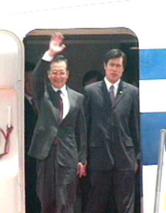 中新網(wǎng)6月29日電 中國國務(wù)院總理溫家寶今天11:50時許乘專機抵達香港國際機場。香港特區(qū)行政長官董建華等到機場迎接。