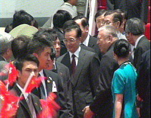 香港特區(qū)行政長官董建華等到機場迎接溫家寶總理