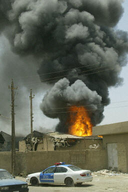 伊拉克首都巴格達市中心一個倉庫6月28日發生火災。兩名伊拉克人在火災現場被逮捕。