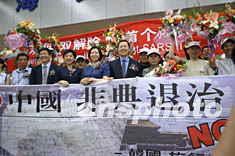 相關(guān)報(bào)道:北京貴賓禮遇歡迎"雙解除"后首個(gè)海外旅游團(tuán) (2003-06-30 17:15)