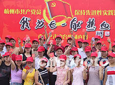 近百名杭州青年七月一日在杭州吳山廣場集體獻血,以獨特的方式度過七·一。作者:張茵