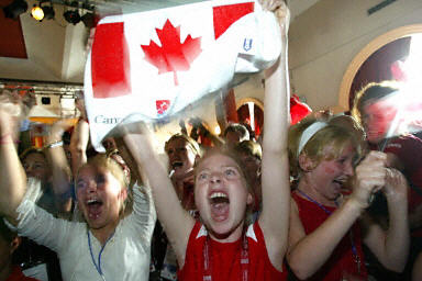 加拿大民眾獲知贏得2010年冬季奧運會舉辦權后歡呼雀躍