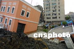 在事故現場方圓一兩百米的范圍內,距離江邊三十米左右的一幢八層樓房及其前方裙房,還有其東側靠近江邊的一幢桔色兩層樓房,均出現嚴重下沉。有施工人員透露,八層樓房將被爆破拆除,而緊挨其北側的一座五層樓高的廠房也將被拆除。目前,各方關注的是正南方向不遠處的一幢十六層樓高的稅務大樓。有關方面希望能盡快控制險情,以確保該樓安全。