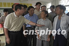 回良玉在滁州紫薇小學看望受災民眾后,叮囑當地政府官員,一定要把人民的利益放在第一位,對受災民眾的安置工作要考慮得周到些。