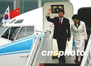 韓國總統(tǒng)盧武鉉七日上午抵達北京,開始其訪華行程。盧武鉉將在北京停留三天后,訪問上海。中新社記者:鄭萍萍