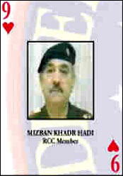 美軍中央司令部當天發(fā)表聲明說,伊拉克阿拉伯復興社會黨的一名地區(qū)領導人、伊革命指揮委員會成員哈迪8日向駐巴格達的美軍投降。他在被美軍通緝的55名前伊拉克高官名單中排名第23位,在美軍撲克牌通緝令中為紅桃9。
